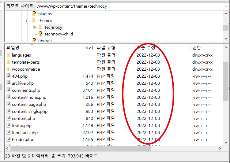 사이트에 Technocy라는 엘리멘토용 워드프레스 테마가 설치되어 있었습니다. 이 테마는 최근까지도 활발히 업데이트되고 있었지만 해당 사이트에는 2022년도 버전이 설치되어 있었습니다.