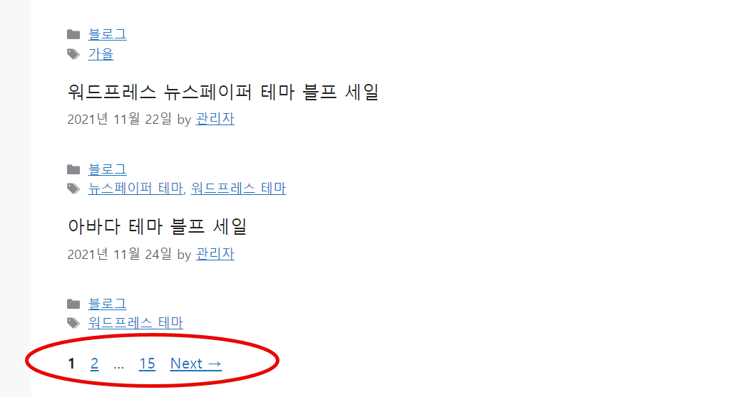 워드프레스에서 최신 글을 전면 페이지에 표시하는 경우 글 개수가 많으면 여러 페이지로 나뉘어지고, 이전/다음 페이지로 쉽게 이동하도록 이전/다음 버튼이 표시되거나 페이지 번호가 표시됩