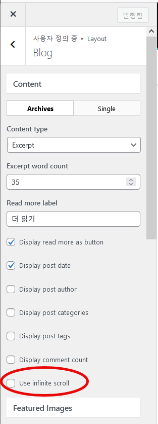 대신 Use infinite scroll을 활성화하면 페이지네이션 대신 무한 스크롤 기능이 적용됩니다.
