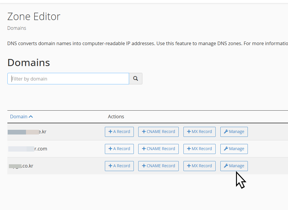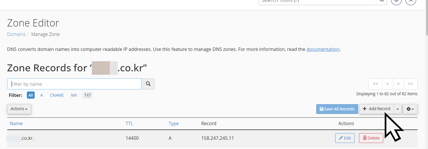 두 호스팅 모두 cPanel을 제공하므로 DNS 레코드 설정 방법은 동일합니다.