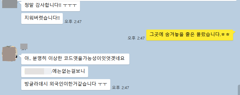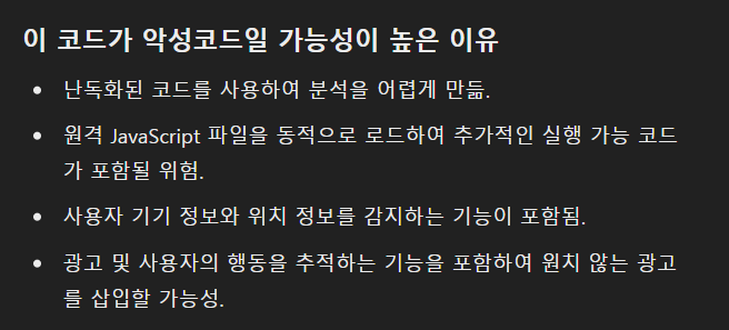 시간을 충분히 투자하여 코드가 어떤 경로를 통해 삽입되었는지 확인할 수 있었습니다. 이때까지 접해보지 못한 방식으로 코드가 추가되어 있었습니다. 그런 것을 고안할 시간과 노력으로 다른 일을 했다면 더 좋지 않았을까 하는 생각이 들었습니다.😥