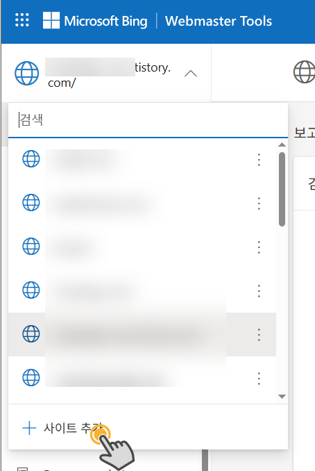 이미 사이트가 추가된 경우에는 위와 같은 화면이 표시될 것입니다. 사이트 주소를 클릭하면 사이트를 추가할 수 있습니다.