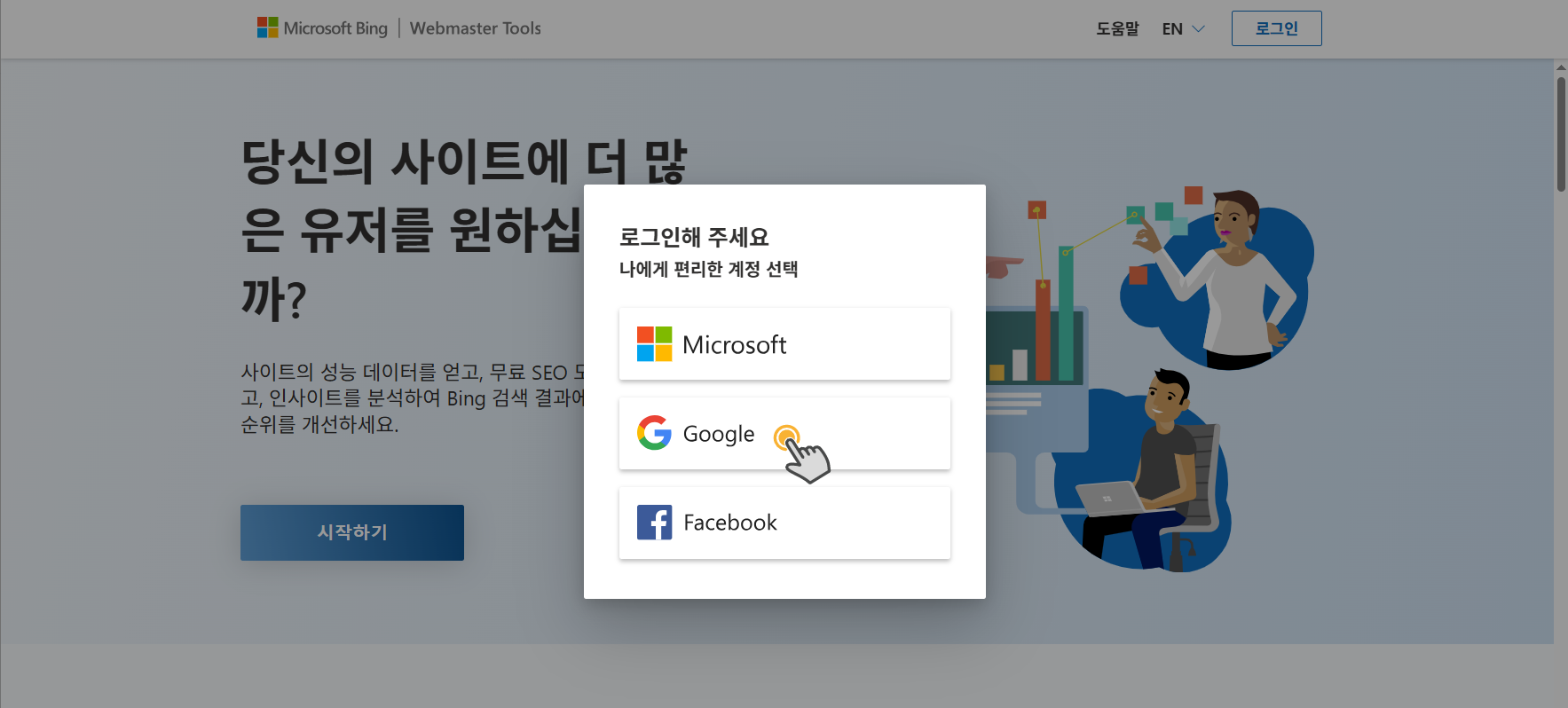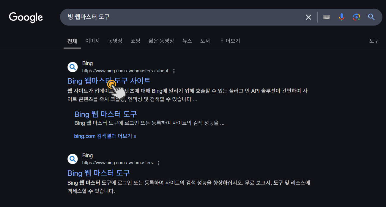 구글에서 "빙 웹마스터 도구"를 검색합니다.