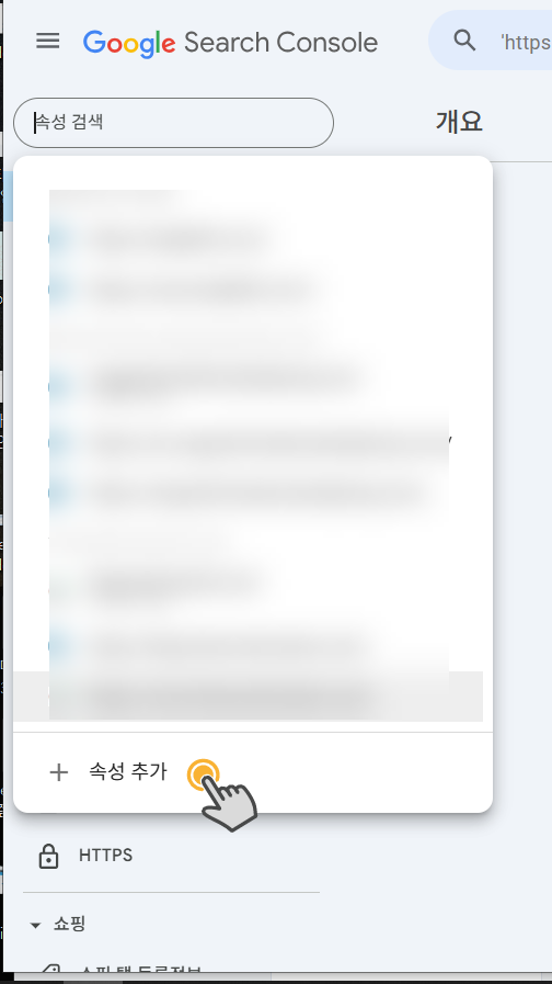 먼저 구글 서치 콘솔에 로그인합니다. 처음 로그인하는 경우 다음과 같이 속성을 등록하는 화면이 곧바로 표시될 수 있습니다.