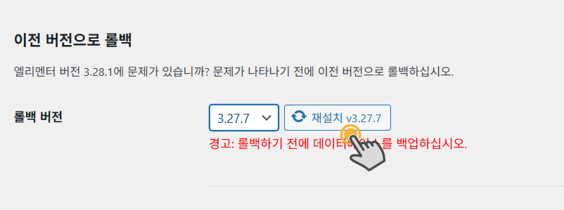 롤백 버전에서 엘리멘터의 버전을 선택하여 이전 버전으로 되돌릴 수 있습니다.