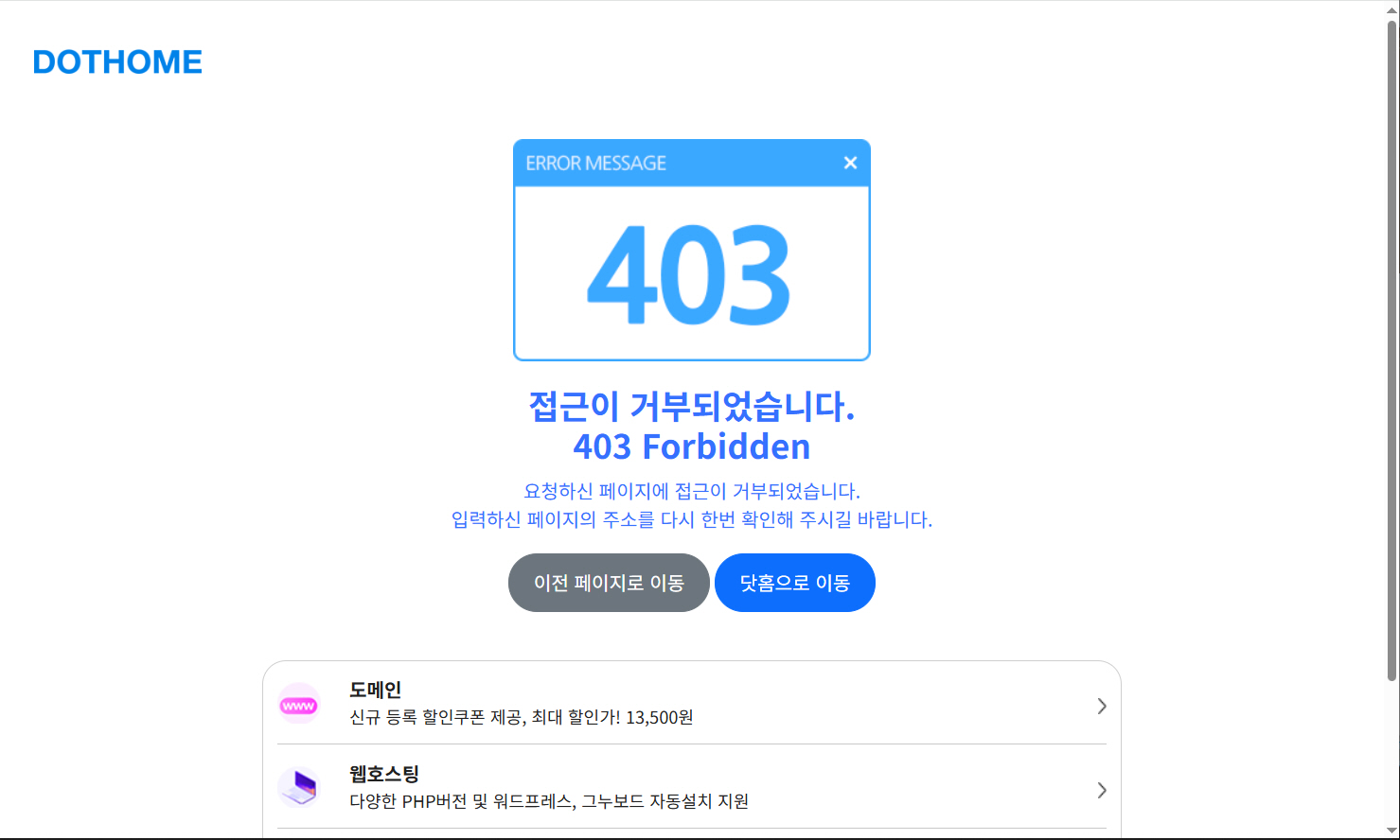 용량 부족과 Internal Server Error 등 몇 가지 문제가 있었고 일부 페이지에서는 403 Forbidden 에러가 발생하기도 했습니다.