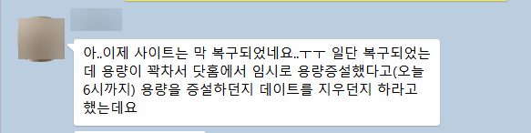 닷홈에서 웹용량 부족으로 인해 사이트가 느려지고 에러가 발생하여 닷홈에서 임시로 용량을 증설했다고 합니다.