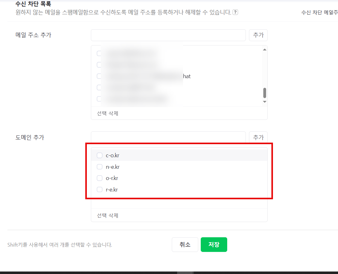이번 기회에 이상한 도메인으로부터 발송되는 메일에 대하여 수신 차단을 설정했습니다.😄