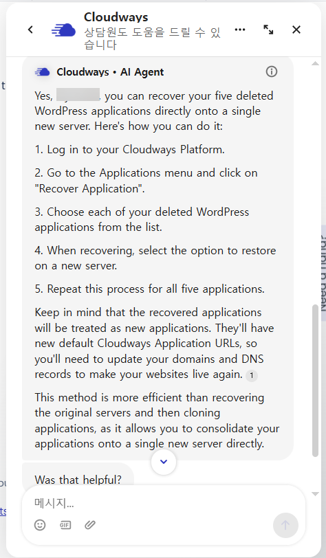 클라우드웨이즈(Cloudways): 삭제된 5개 서버를 하나의 서버로 복원하는 작업