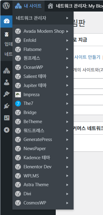 워드프레스 테마 테스트 용도로 사용하고 있는 사이트로 이렇게 많은 사이트를 하나의 멀티사이트에 연결할 경우, 간혹 해당 사이트에서 작업이 많아지면 서버 CPU 사용량이 급증하기도 하네요. 많은 사이트를 하나의 멀티사이트로 연결할 경우 서버 크기도 중요한 것 같습니다. 작은 서버 사이즈에 너무 많은 사이트를 추가하면 종종 CPU 사용량 급증으로 서버 문제가 발생하기도 합니다.😢