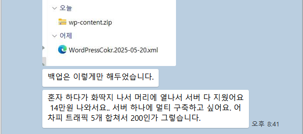 클라께서 서버에 하나의 워드프레스 사이트를 설치하여 총 5개를 운영하시다가 서버 비용 때문에 서버를 모두 삭제한 상태였습니다.