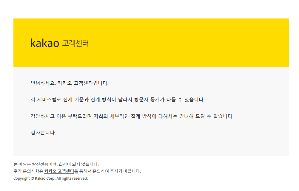 티스토리에서는 "각 서비스별로 집계 기준과 집계 방식이 달라서 방문자 통계가 다를 수 있습니다. 감안하시고 이용 부탁드리며 저희의 세부적인 집계 방식에 대해서는 안내해 드릴 수 없습니다"라고 안내하고 있습니다.😢