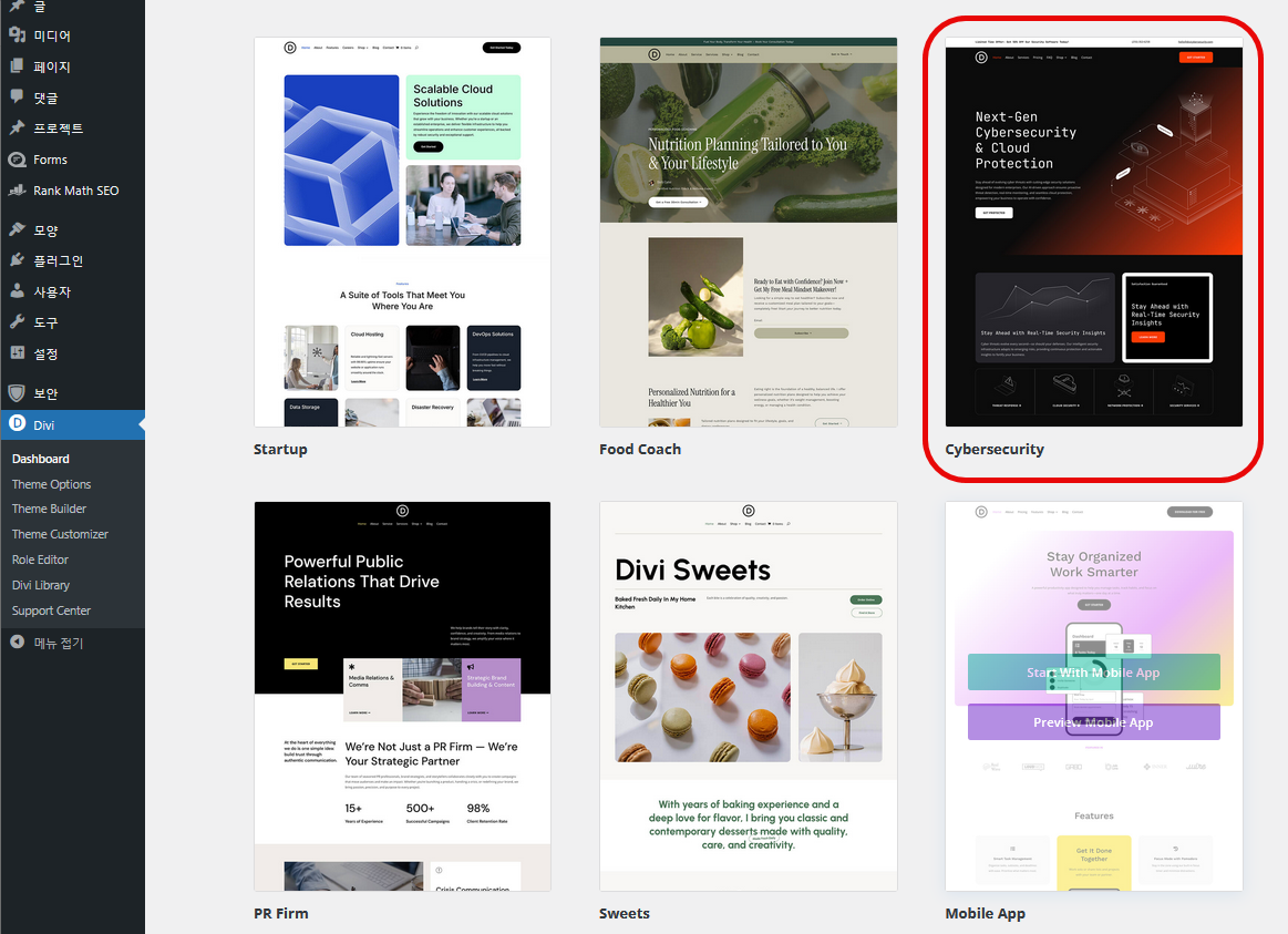 워드프레스 Divi 테마용 사이버 보안(Cybersecurity) 스타터 사이트 공개