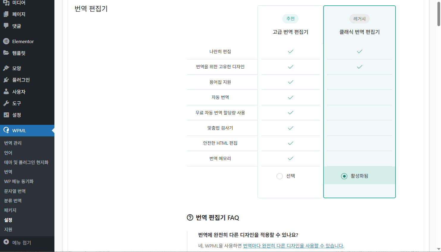 워드프레스 다국어 번역 플러그인 WPML: 엘리멘터 관련 버그 수정