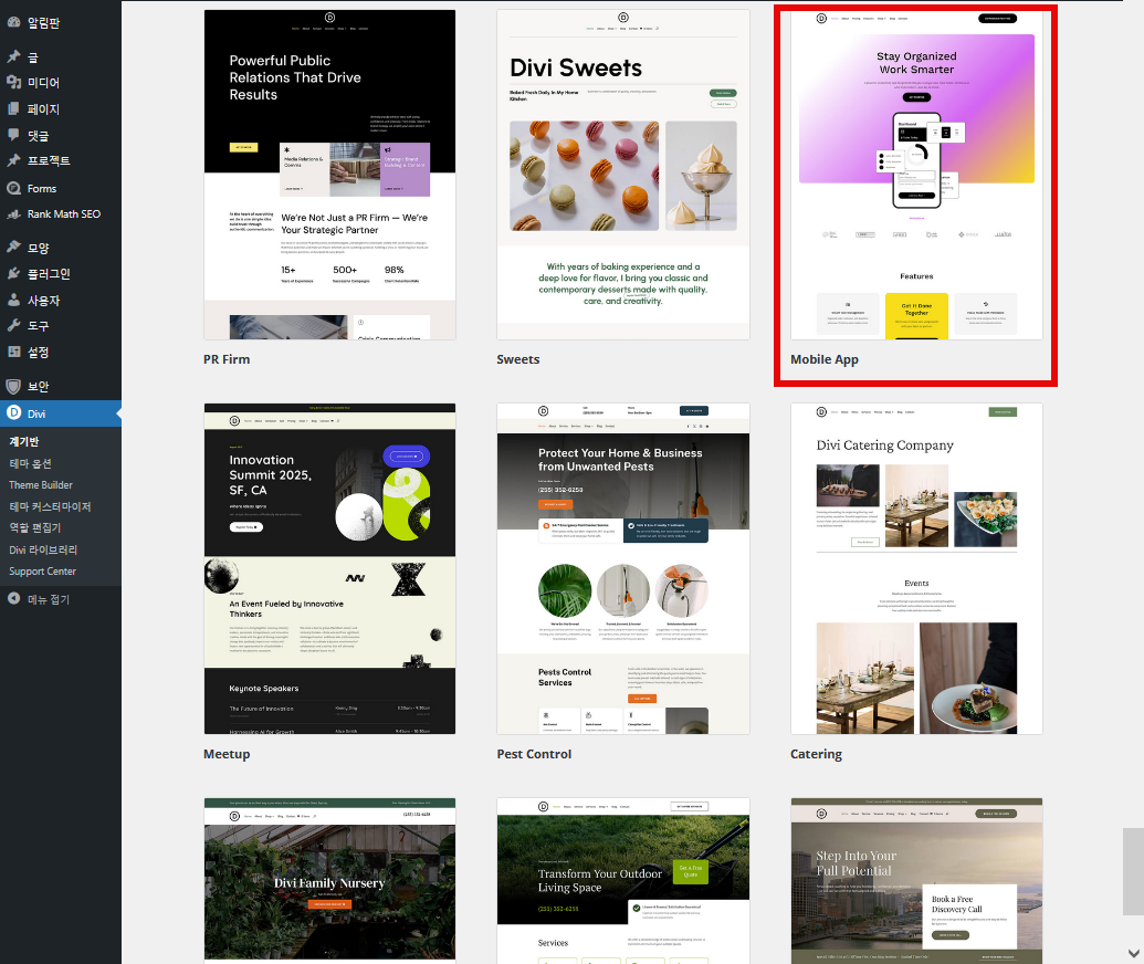 워드프레스 Divi 테마용 모바일 앱(Mobile App) 스타터 사이트 템플릿 릴리스