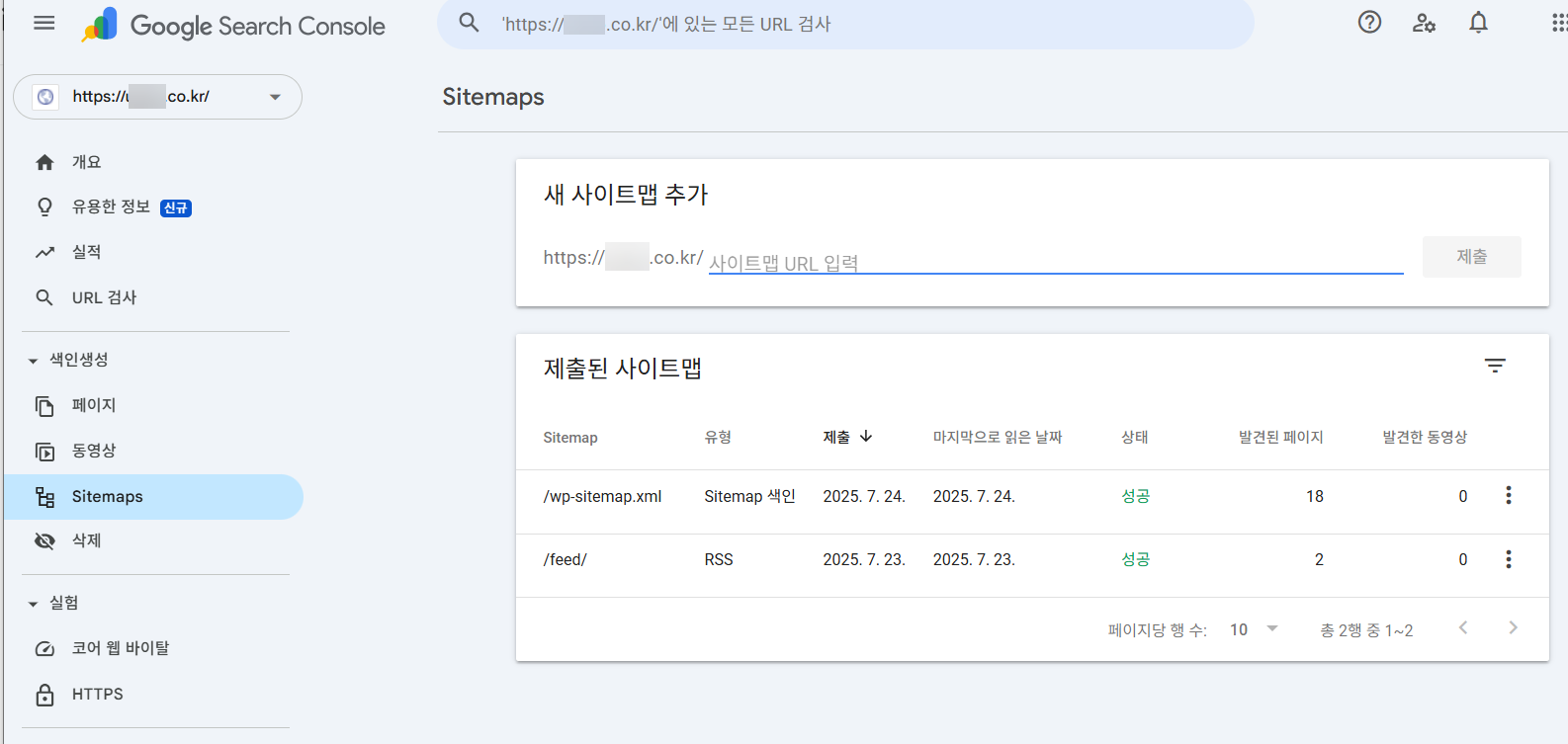 - All-in-One SEO 플러그인을 설치한 경우 사이트맵 주소는 /sitemap.xml입니다.
