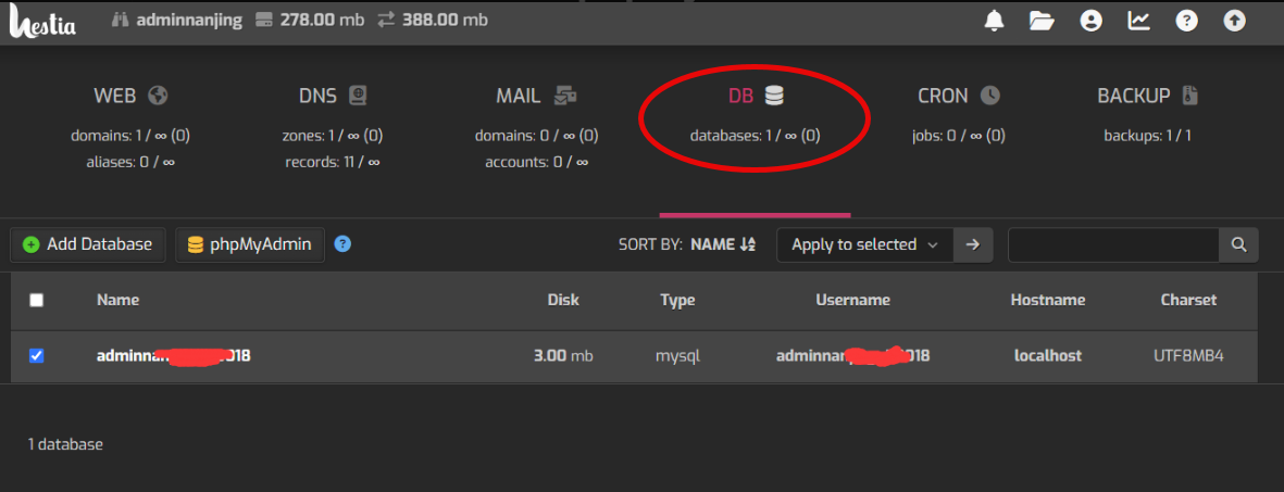 헤스티아에서 phpMyAdmin에 접속하는 것부터 난관이었습니다. 챗GPT에 질문해 보니 DB 메뉴를 클릭하면 된다고 하였지만, DB 메뉴가 없었습니다.😥