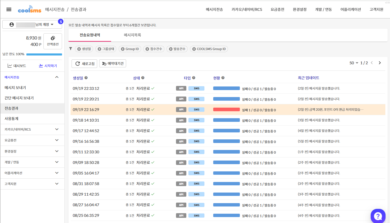 저는 Quform 플러그인에서 CoolSMS(쿨에스엠에스)를 연동하여 문의 제출 시 문자로 발송되도록 설정했습니다. 1만 원을 충전하여 이용하고 있는데, 문의가 그리 많지 않다 보니 5개월이 지나도록 1000원 정도밖에 이용하지 않았습니다.😄