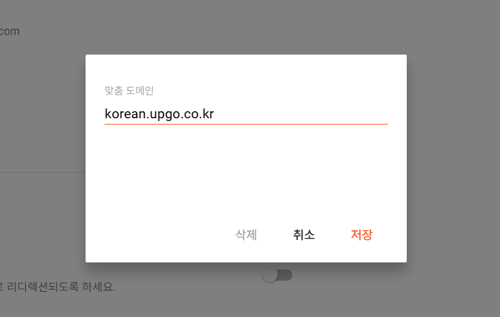 테스트로 서브도메인(korea.upgo.co.kr)을 입력해 보았습니다.