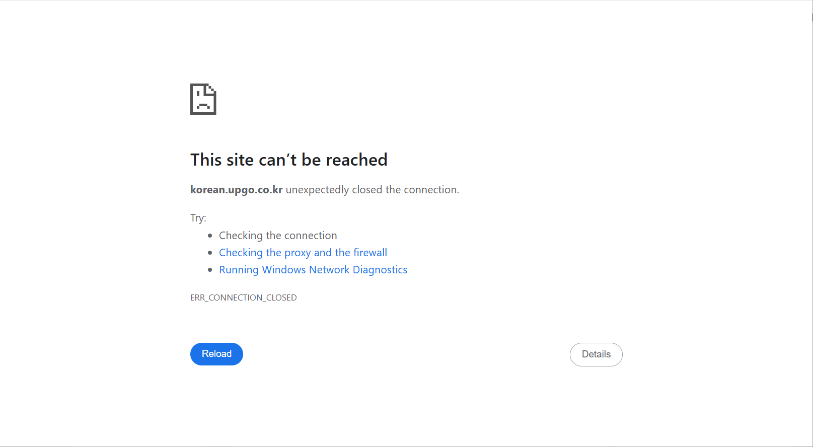이제 1~2시간에 서너 시간 정도 기다리면 도메인/서브도메인 접속이 정상적으로 이루어질 것입니다. 도메인의 DNS 레코드 변경 사항이 전파되려면 서너 시간이 걸릴 수 있으며, 충분히 DNS 레코드 정보가 전파되지 않으면 아래 그림과 같이 ERR_CONNECTION_CLOSED 또는 다른 에러가 발생하면서 사이트에 접속되지 않을 수 있습니다. 이 경우 기다리면 사이트에 접속이 됩니다.