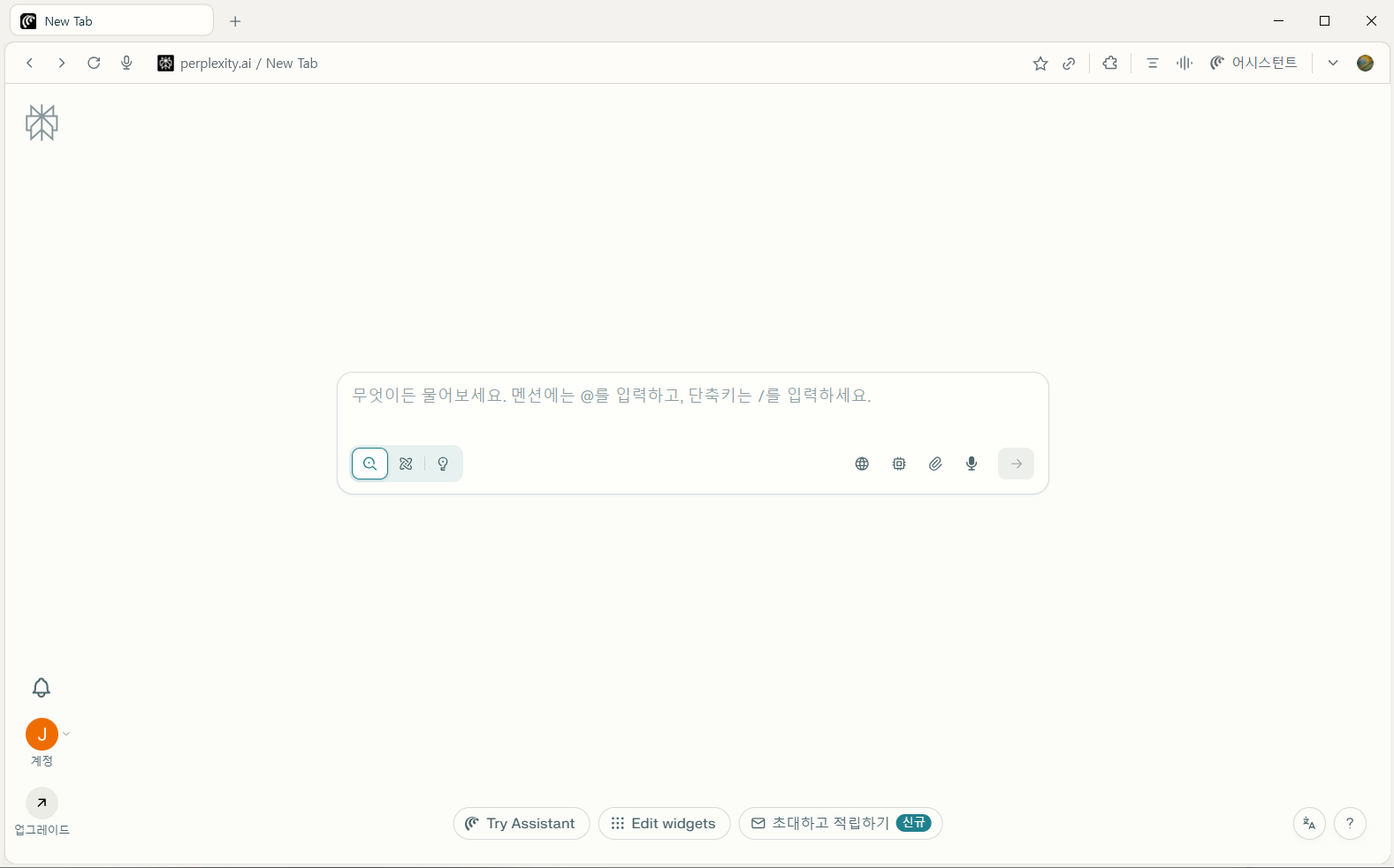 브라우저를 설치하고 실행하면 퍼플렉시티 전용 브라우저 기능을 합니다.