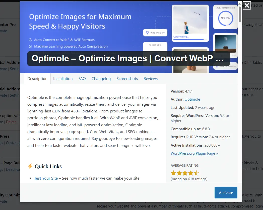 이런 플러그인을 사용하는 것보다 이미지를 업로드하기 전에 압축하여 용량을 최소화하는 것이 좋습니다. 저는 주로 챗GPT를 이용하여 이미지를 생성한 후에, wepb로 변환한 다음 온라인 이미지 압축 사이트에서 이미지를 압축합니다. 그러면 이미지 크기가 보통 50KB 이하로 줄어듭니다.😄