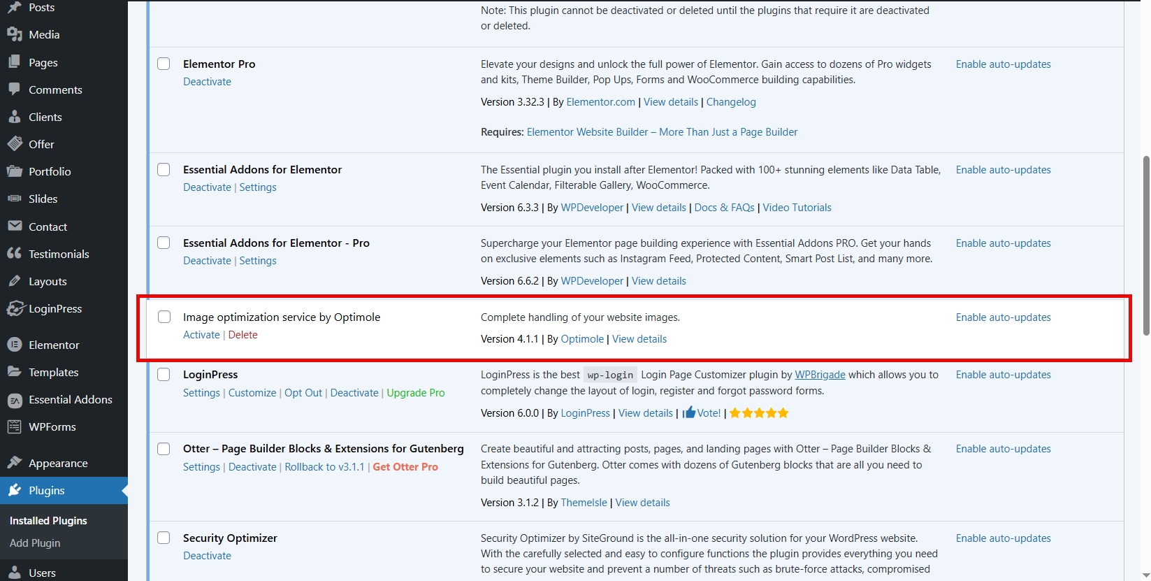 해당 사이트의 경우 Image Optimization service by Optimole이라는 이미지 최적화 플러그인이 엘리멘터와 충돌하면서 발생하는 문제였습니다.