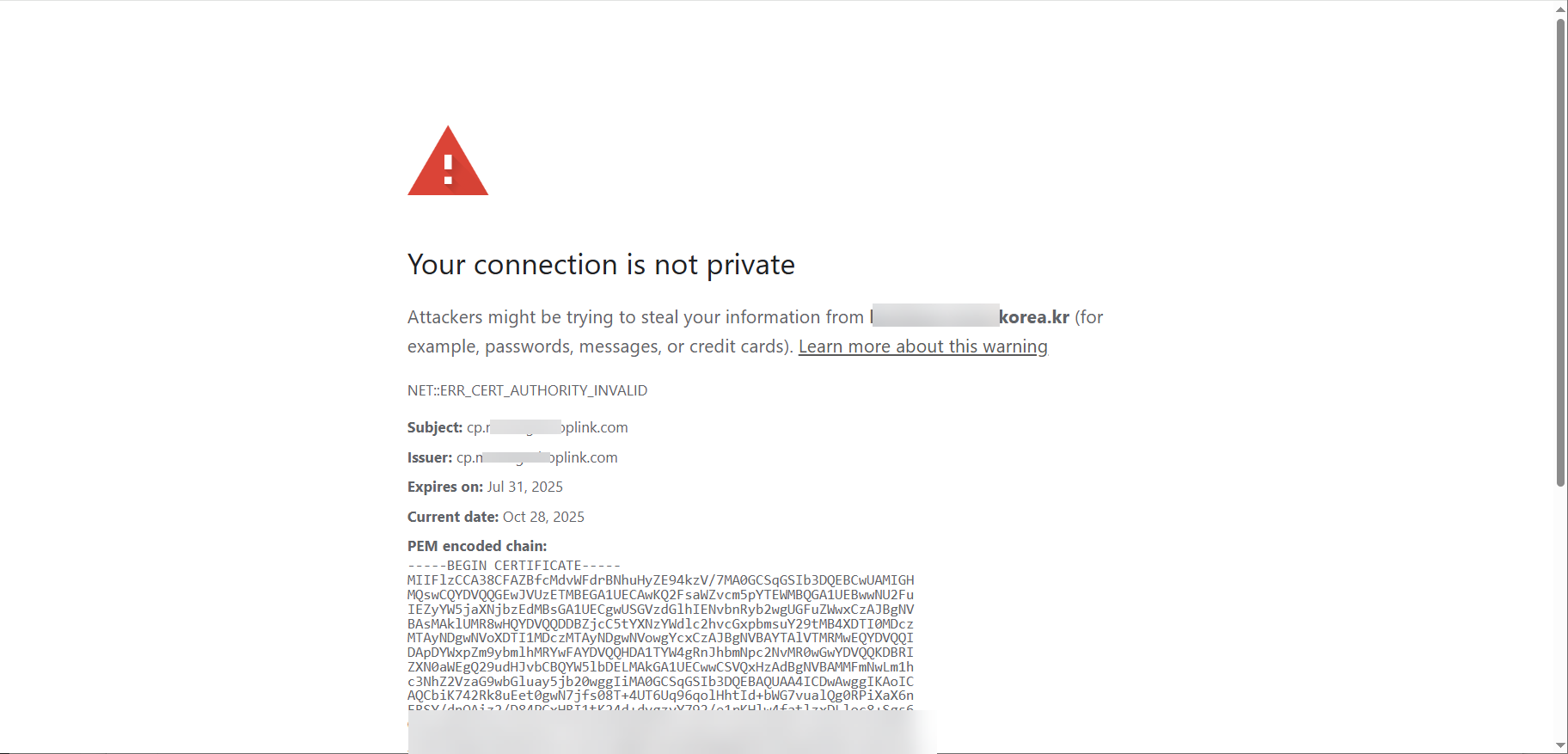 하지만 신규로 추가하는 서브도메인에 대하여 SSL 인증서 설치 오류가 발생했습니다.