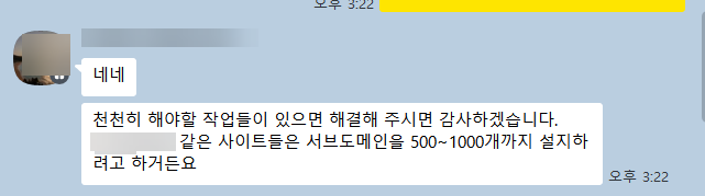 참고로 클라이언트는 서브도메인을 500~1000개까지 설치하려고 계획하고 있었습니다.