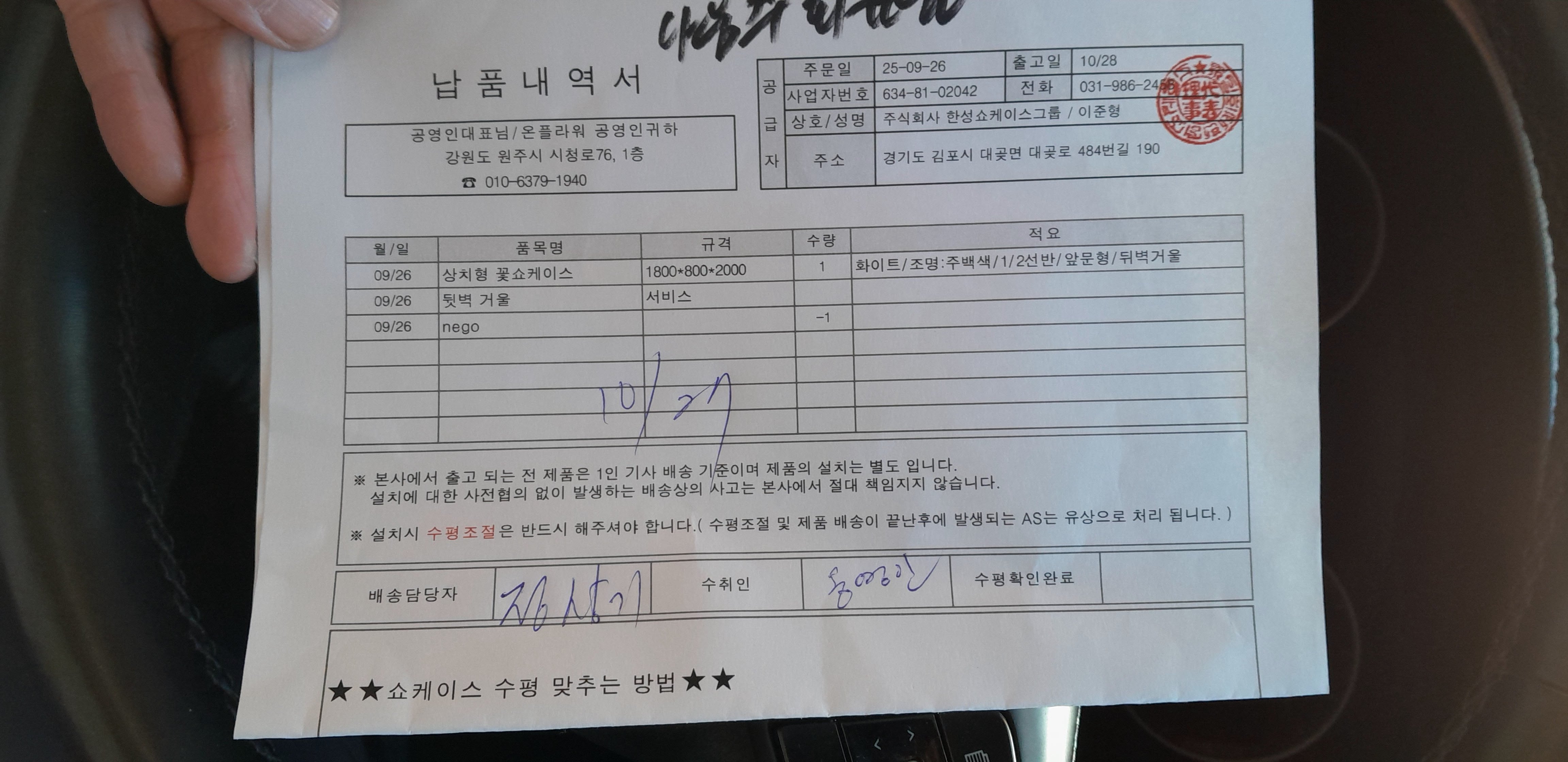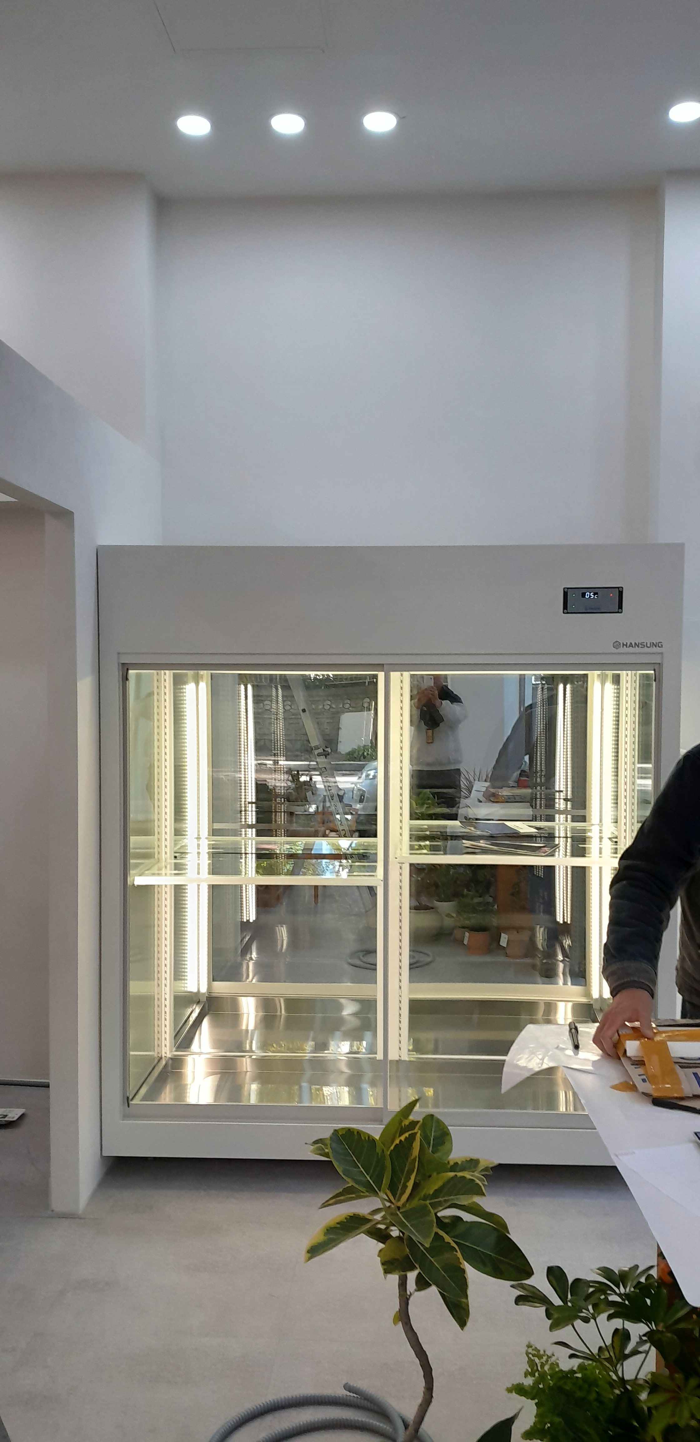 설치 당일, 기사님은 리프트 차량으로 도착했습니다. 출입문 폭과 턱 높이, 실외기 자리까지 사전 상담대로 점검했지만, 막상 들여놓을 때 화환 진열대와 동선이 겹쳐 위치를 한 칸 옮겨야 했습니다.
