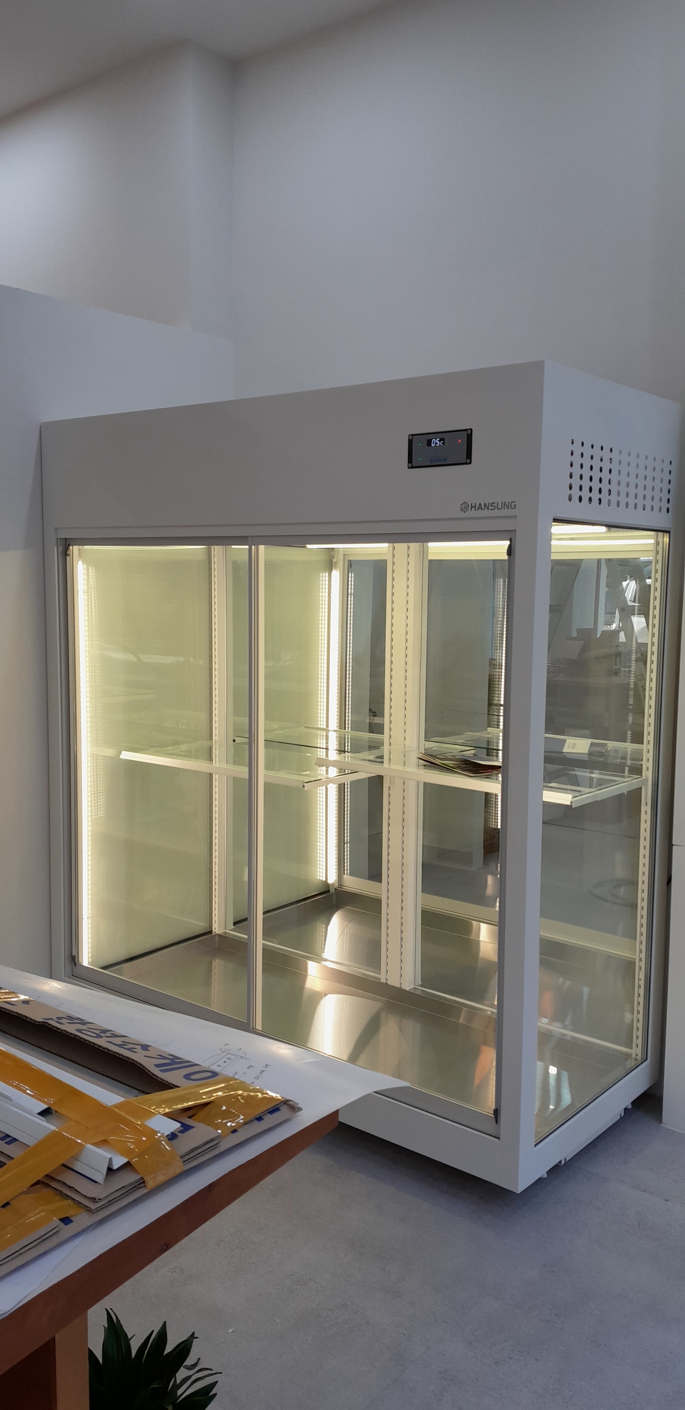 그래서 여러 브랜드를 직접 비교했습니다. 쇼룸에서 문 가스켓 밀착, 힌지 유격, 도어 히터의 김서림 억제 성능, 선반 피치(간격)와 높이 조절 편의, 배수 구조와 청소 동선까지 확인했죠. 최종적으로 한성쇼케이스를 선택한 이유는 뚜렷했습니다.