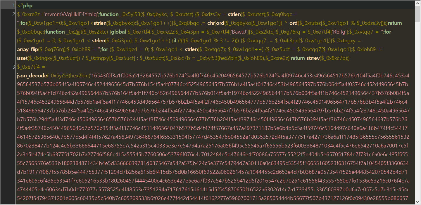 파일 내용을 살펴보면 아래와 같이 난독화되어 알아보기 어렵게 되었습니다.