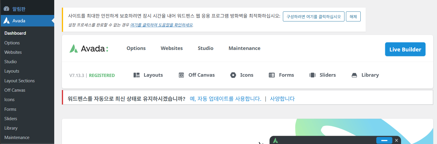 해당 사이트에는 베스트셀링 테마인 아바다 테마가 설치되어 있었습니다.