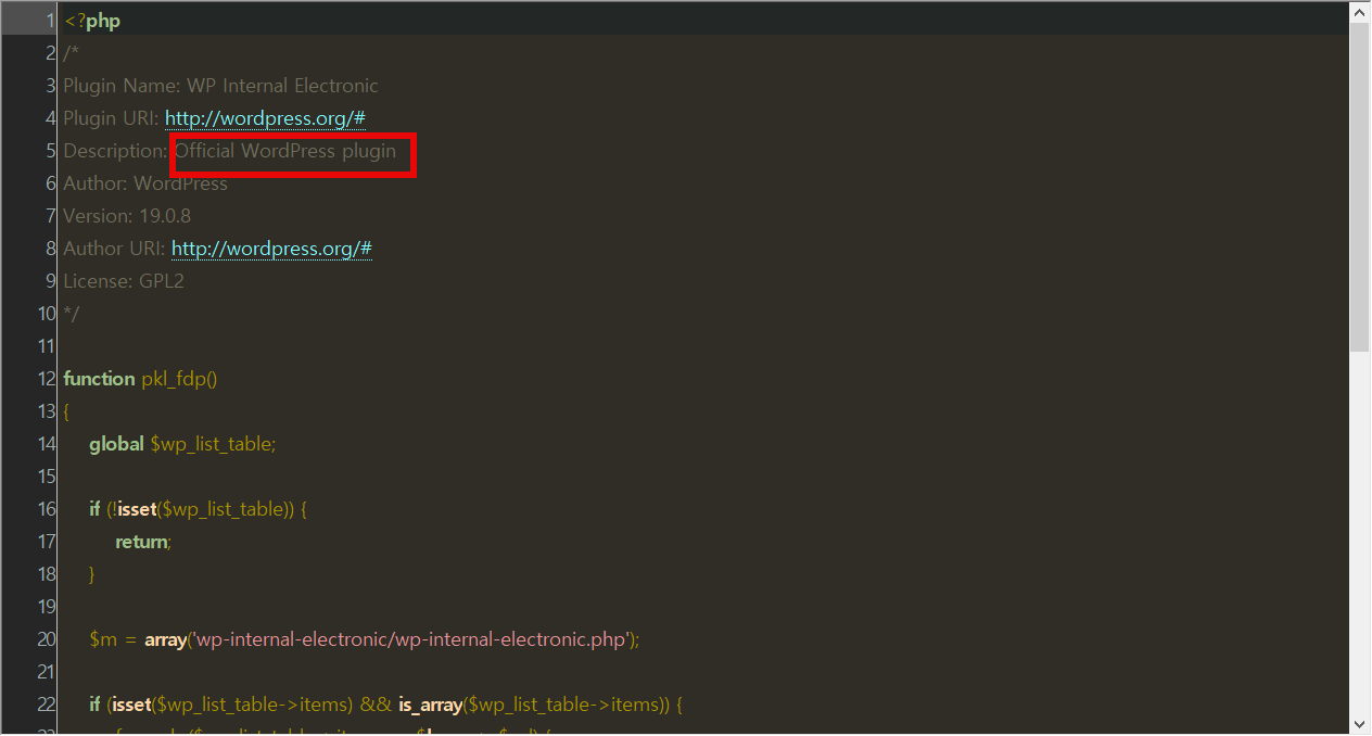 백도어 기능을 하는 플러그인이 대부분 'Official WordPress plugin'이라고 설명되어 있어 언뜻 보면 워드프레스 공식 플러그인으로 잘못 인식할 수도 있을 것 같습니다.