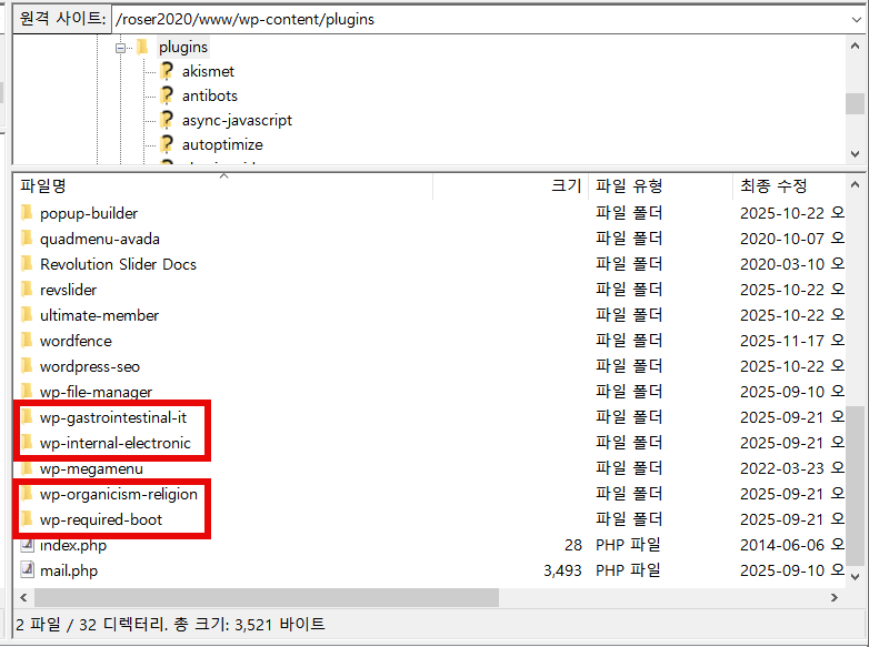 또한, 플러그인 폴더에도 비정상적으로 보이는 플러그인이 몇 개 눈에 띄었습니다.