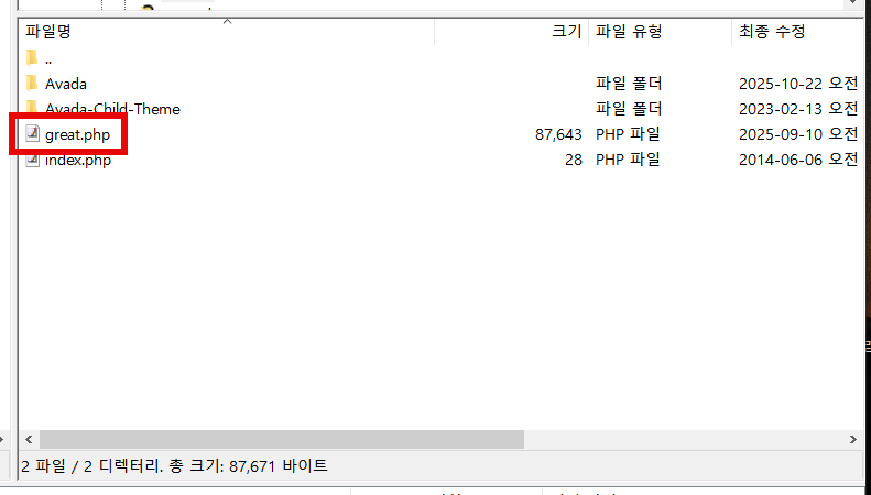 테마 폴더에도 이상한 이름의 파일이 생성되어 있었습니다.