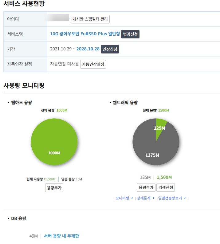 웹용량도 중요합니다. 웹용량이 부족하게 되면 다양한 문제가 발생합니다.