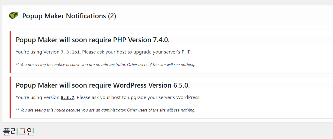이 때문에 일부 플러그인의 업데이트가 불가능한 상태였습니다.