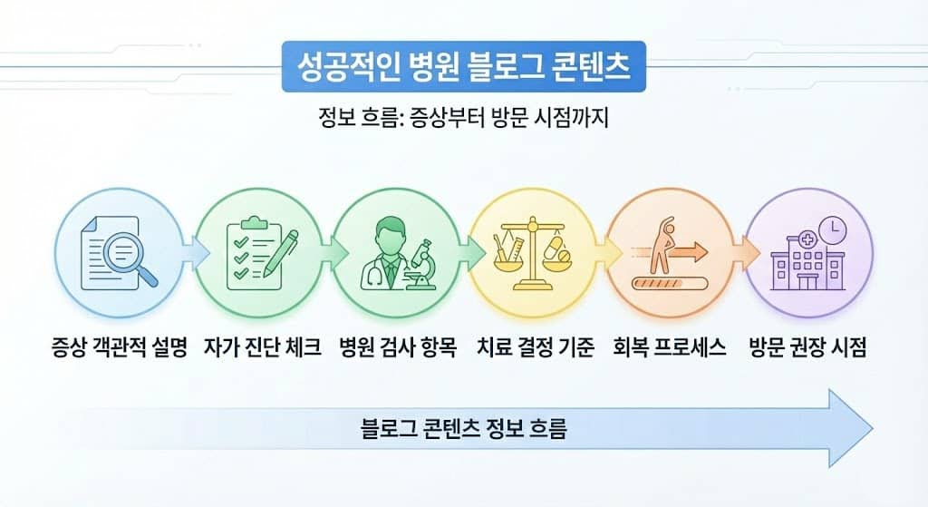 성공적인 병원 블로그 콘텐츠는 다음의 정보 흐름을 따릅니다.