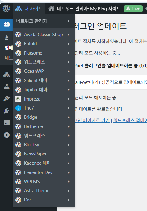 그래서 멀티사이트에 많은 사이트를 추가하여 운영하려면 서버 리소스가 좋아야 합니다. 그렇지 않으면 수시로 에러가 발생할 수 있고, 일부 공유호스팅에서는 쫓겨날 수도 있습니다.