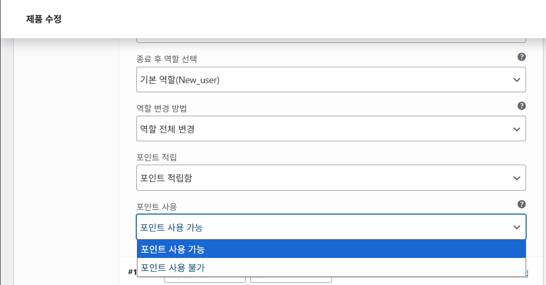 아래로 스크롤하여 포인트 사용에 대한 옵션으로 '포인트 사용 가능' 여부를 선택할 수 있습니다.