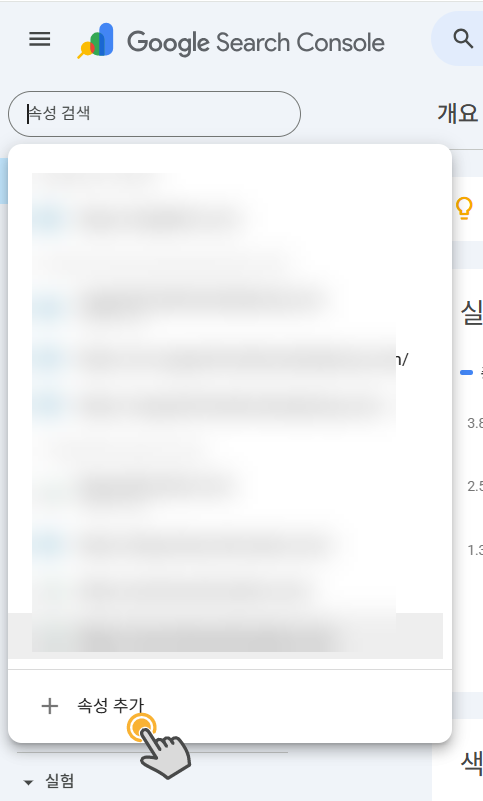 (1) 먼저 구글 서치 콘솔(Google Search Console)에 접속하고 속성 추가를 클릭합니다.