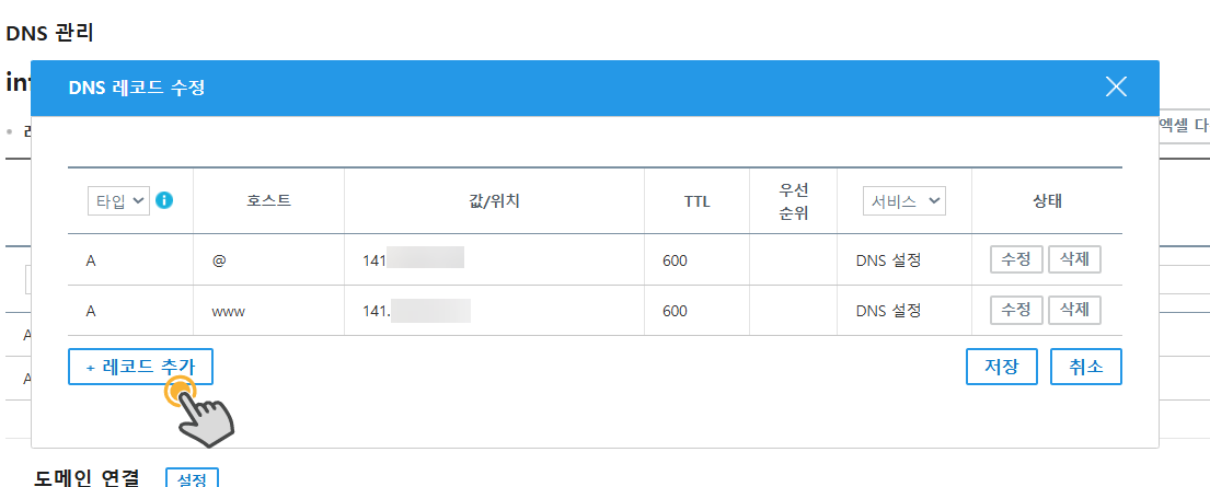 가비아 도메인 DNS 레코드 설정 방법 - 워드프레스 정보꾸러미