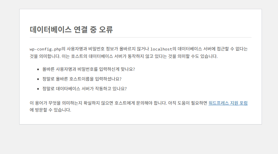 데이터베이스 연결 중 오류는 DB 정보가 올바르지 않을 때 주로 발생하지만, 서버 리소스가 부족하여 데이터베이스 서버가 일시적으로 장애를 겪으면서 발생하기도 합니다.