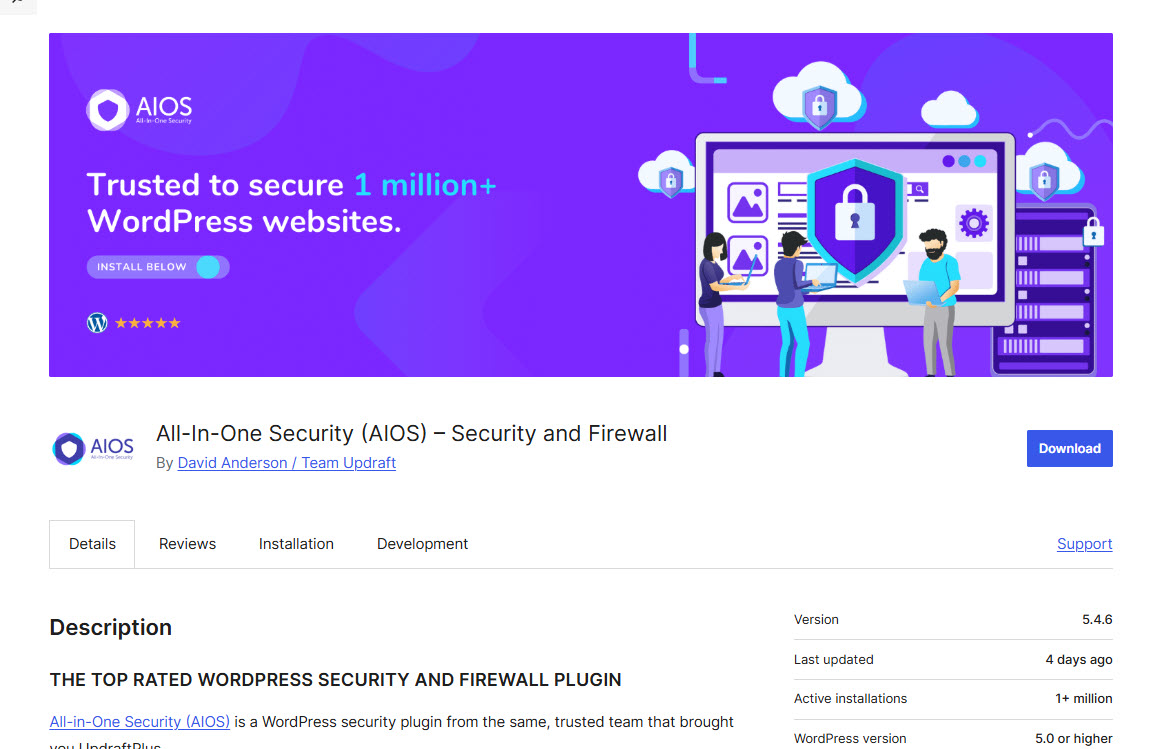 AIO 보안(AIOS) 플러그인은 현재 100만 개가 넘는 사이트에 설치되어 사용되는 인기 워드프레스 보안 플러그인 중 하나입니다.