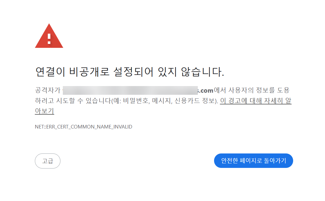 이 문제가 발생한다면 해당 도메인에 대하여 SSL 인증서가 설치되는 경우 HTTPS 주소로 접속하면 문제가 해결될 것입니다. SSL 인증서가 설치가 안 되었거나 SSL 인증서가 만료한 상태에서 HTTPS 주소로 접속하면 '연결이 비공개로 설정되어 있지 않습니다' 화면이 표시됩니다.