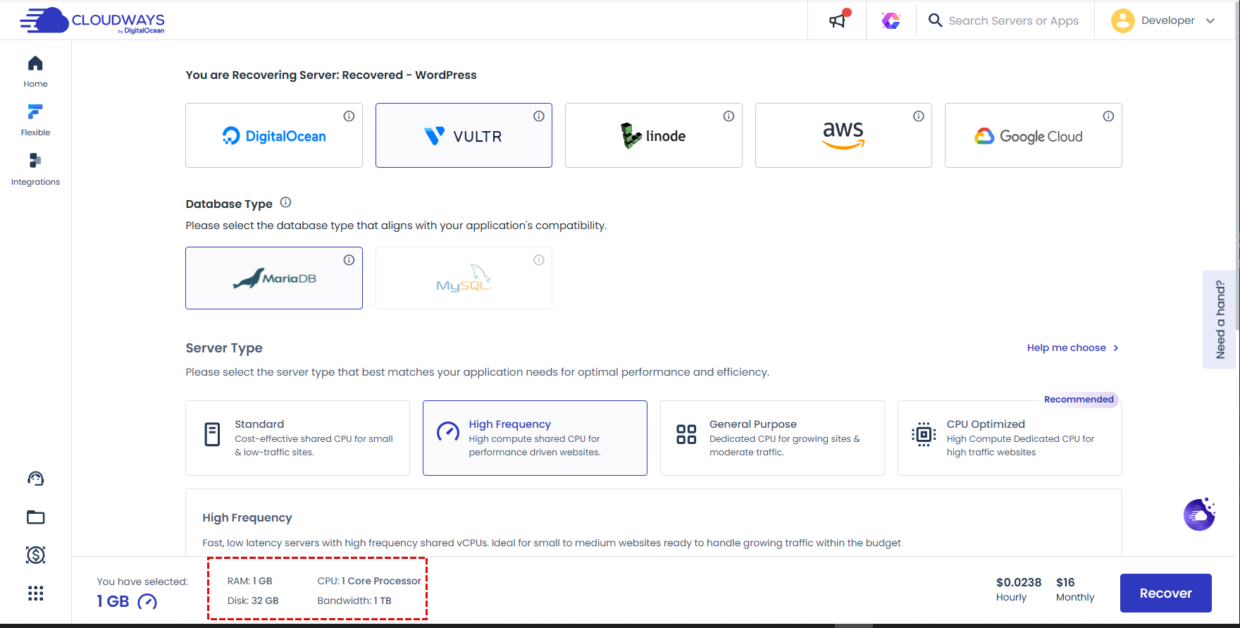 서버 크기는 쉽게 업그레이드할 수 있지만, 다운그레이드(서버 크기를 줄이는 것)는 귀찮은 작업이 필요하므로 방문자 수가 별로 없는 경우에는 처음 시작할 때 서버 크기를 작게 설정하는 것이 좋습니다.