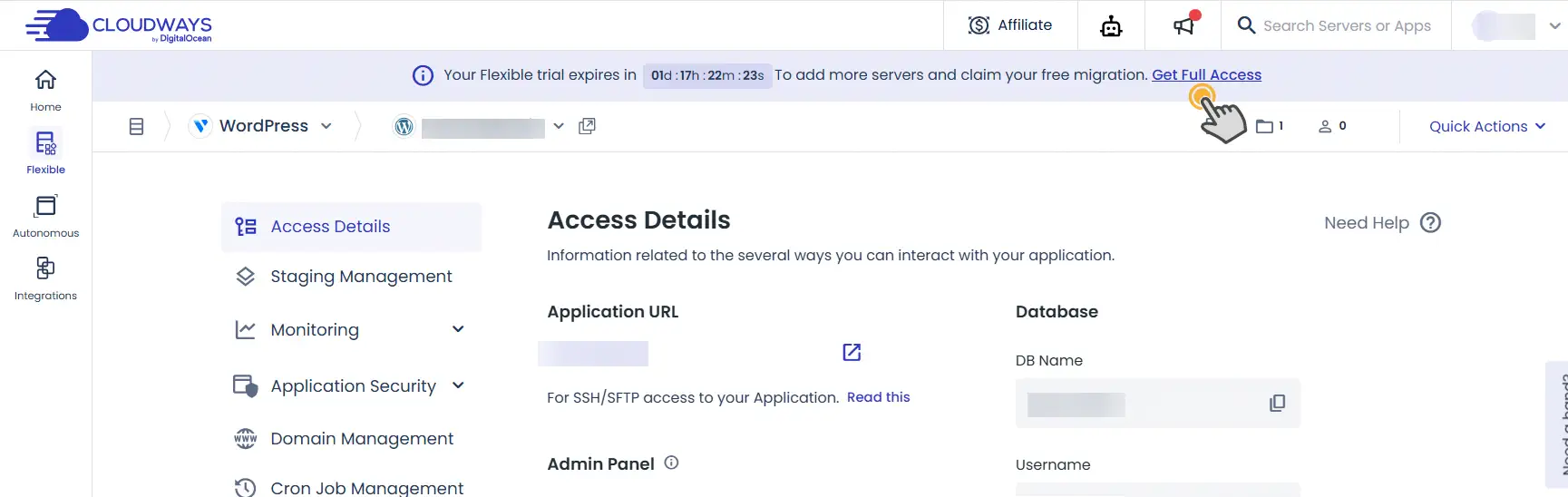 클라우드웨이즈에 가입하면 3일 동안 무료로 시험 사용할 수 있습니다. 체험 기간 동안 사용하면서 마음에 들면 Get Full Access 링크를 클릭하여 결제 정보를 입력해야 계속 이용이 가능합니다. (👉 할인 혜택을 받으려는 경우 이 글을 참고하여 프로모 코드 등록 요청을 할 수 있습니다.)