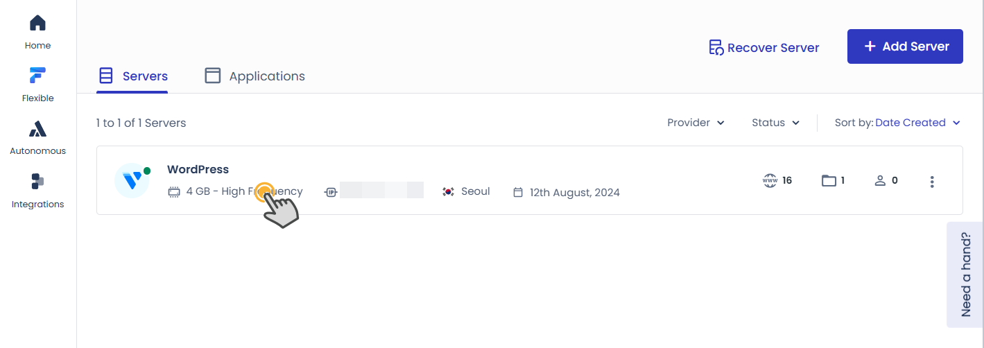 1. 클라우드웨이즈 플랫폼에서 Flexible » Servers로 이동하여 해당 서버를 클릭합니다.
