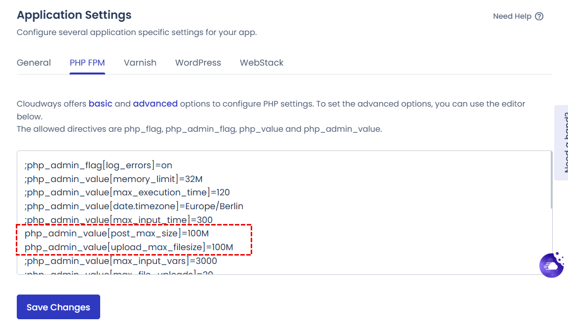 클라우드웨이즈에서 워드프레스를 설치하는 경우 최대 파일 업로드 크기가 2MB로 표시되는 경우가 많습니다. 서버 설정에서 Upload Size 옵션을 변경해도 2MB로 표시되거나, 100MB 이상으로 설정해도 50MB 이상으로 증가하지 않을 수도 있습니다.